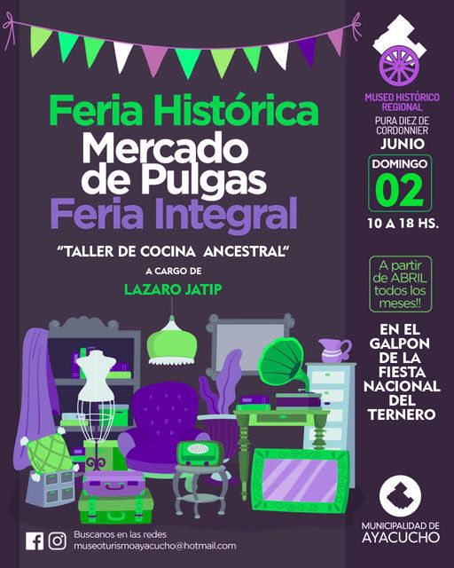 Este domingo «Feria Histórica» en el Galpón de espectáculos de la Fiesta del Ternero 2 junio, 2024 Pablo Tusq destacados, Locales, locales DIA 0 Más de 30 puestos por recorrer. Mercado de Pulgas. Feria Americana. Artesanos. Emprendedores. Taller de cocina ancestral. Organiza e invita Museo Histórico Regional Pura Diez de Cordonnier. Domingo 2 de Junio Galpón de la Fiesta Nacional del Ternero De 10 a 18 horas X