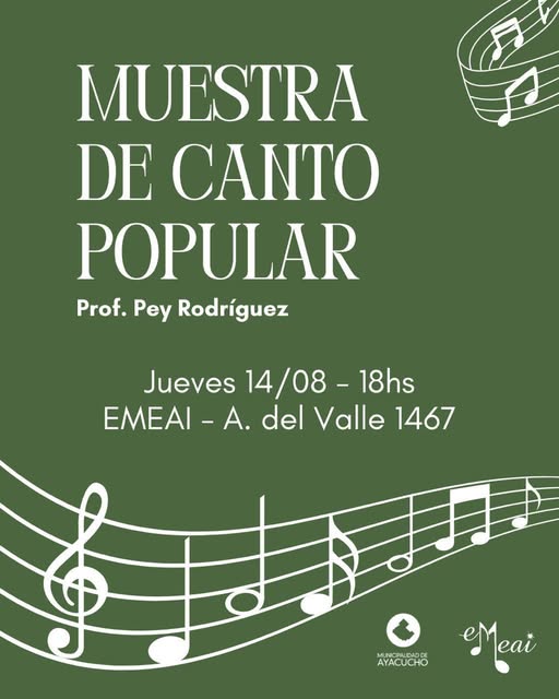 Este jueves 14, Muestra de Canto Popular a cargo del Prof. Pey Rodríguez 14 agosto, 2025 Pablo Tusq destacados, Locales, locales DIA 0 La EMEAI te invita para este JUEVES 14/08 a las 18, a la Muestra de Canto Popular a cargo del Prof. Pey Rodríguez. X