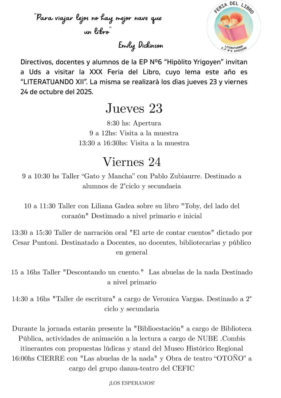 Este jueves 23 y viernes 24, se realiza la tradicional Feria del Libro de la EP 6 – «Literatuando XII»