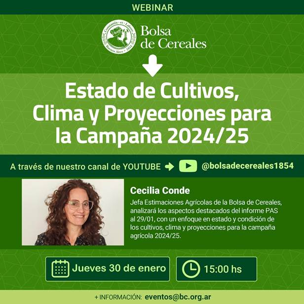 Bolsa de Cereales Webinar «Estado de Cultivos, Clima y Proyecciones para la Campaña 2024/25»