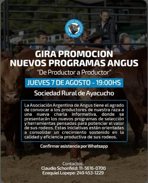 Este jueves 7 de Agosto – Gira de promoción de los nuevos programas Angus / confirmar por WS 6 agosto, 2025 Pablo Tusq Campo, campo DIA, destacados 0 Este jueves en la Secretaría «Luciano Ceverio», 25 de Mayo y Sarmiento. Confirmar vía whatsApp a los teléfonos contenidos en el flyer. X
