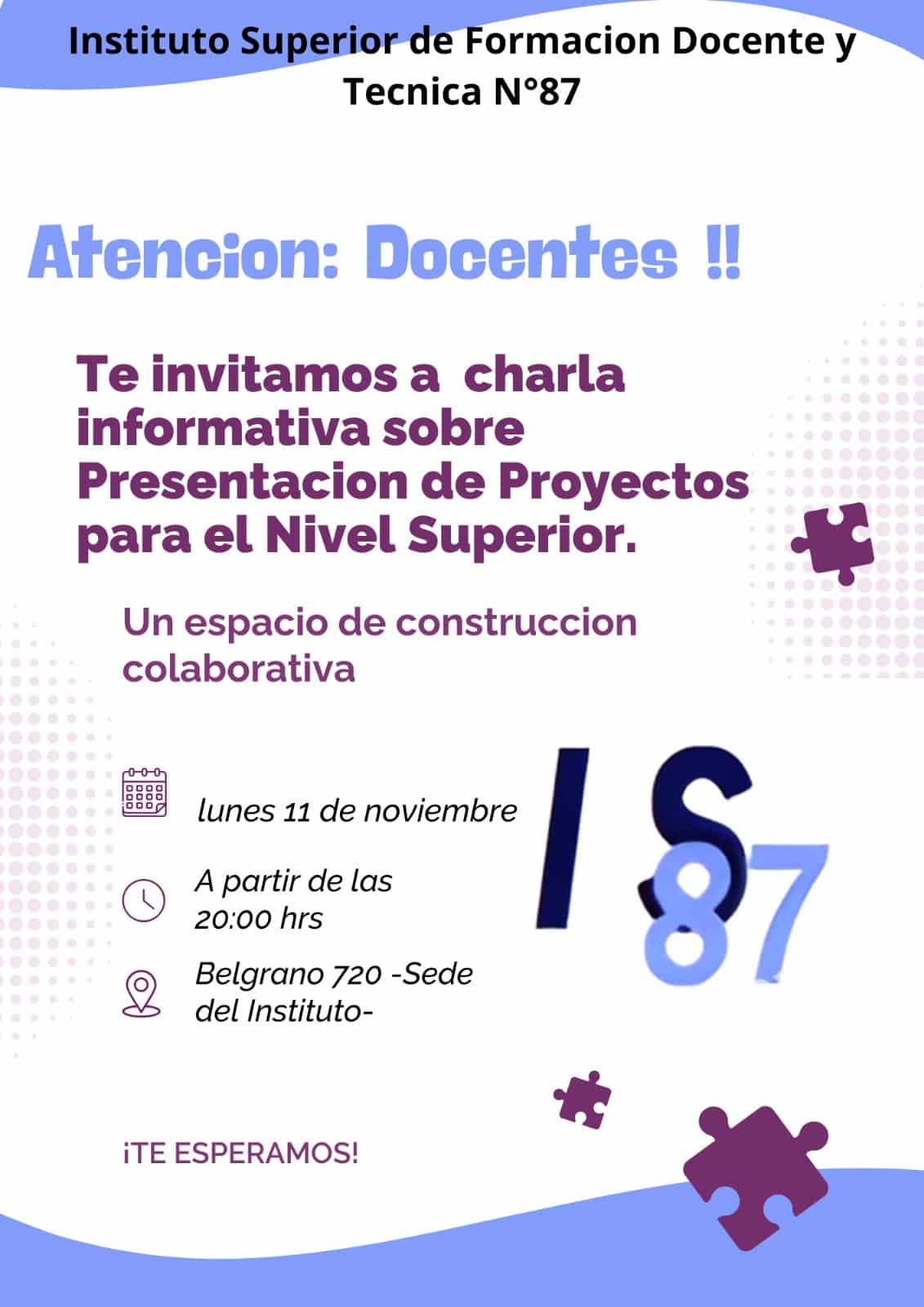 Este lunes 11 en el ISFDyT Nro 87, charla informativa para presentación de proyectos 1 noviembre, 2025 Pablo Tusq destacados, Locales, locales DIA 0 X