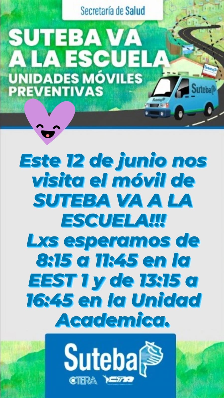 Este lunes 12/6 visitará Ayacucho la combi de salud de SUTEBA con el programa, «SUTEBA va a la escuela», donde se realizarán actividades relacionadas con la atención primaria de la salud de docentes, afiliados y no afiliados a SUTEBA.
