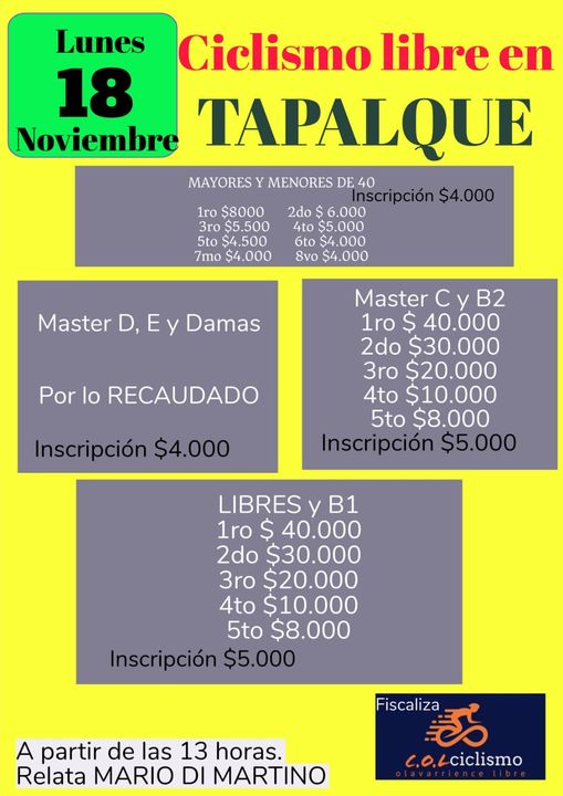 Este lunes 18 de Noviembre -feriado-, habrá Ciclismo en Tapalqué 16 noviembre, 2024 Pablo Tusq Deportes, deportes DIA 0 X