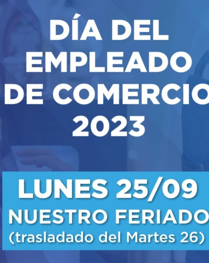 Este lunes 25 de Septiembre los Empleados de Comercio celebran su día y con la firma de un acuerdo marco entre los empleadores y la Cámara de Comercio ese día, todos los trabajadores comprendidos en el convenio 130/75 no irán a trabajar por ende el comercio permanecerá CERRADO.
