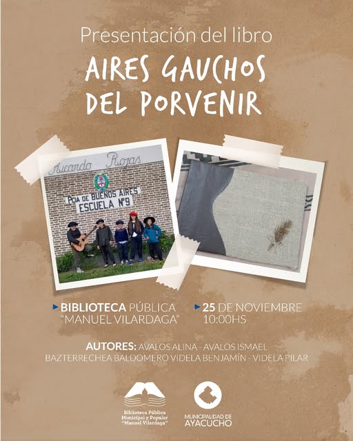 La Biblioteca Pública Municipal y Popular Manuel Vilardaga tiene el placer de invitar a toda la comunidad a la presentación del libro” Aires gauchos del Porvenir”.