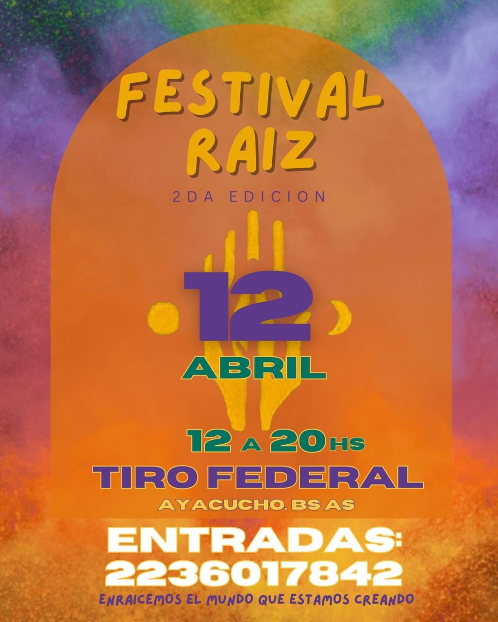 2° Festival Raíz – Fecha, hora y lugar: Sábado 12, de 12:00 a 20:00, en el Tiro Federal, av. Tiburcio Bavio 2475.