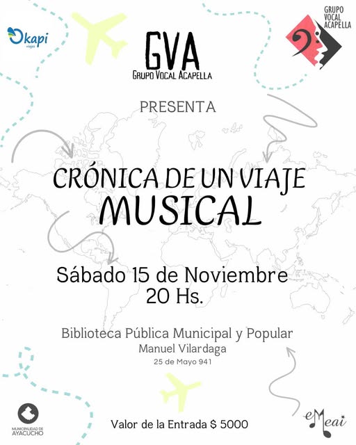 Este sábado 15 de Noviembre, concierto de fin de año del Grupo Vocal Acapella – GVA 15 noviembre, 2025 Pablo Tusq destacados, Locales, locales DIA 0 ¡Te invitamos al concierto de fin de año del Grupo Vocal Acapella – GVA! *»CRÓNICA DE UN VIAJE MUSICAL»* Una invitación a escuchar, recordar y dejarse llevar por la música. Fecha: Sábado 15 de Noviembre Hora: 20:00hs. Lugar: Biblioteca Pública, Municipal y Popular Manuel Vilardaga (25 de Mayo 941) Valor de la entrada: $ 5000.- Pasa por EMEAI por tu entrada Aristóbulo del Valle 1467. ¡Te esperamos! X