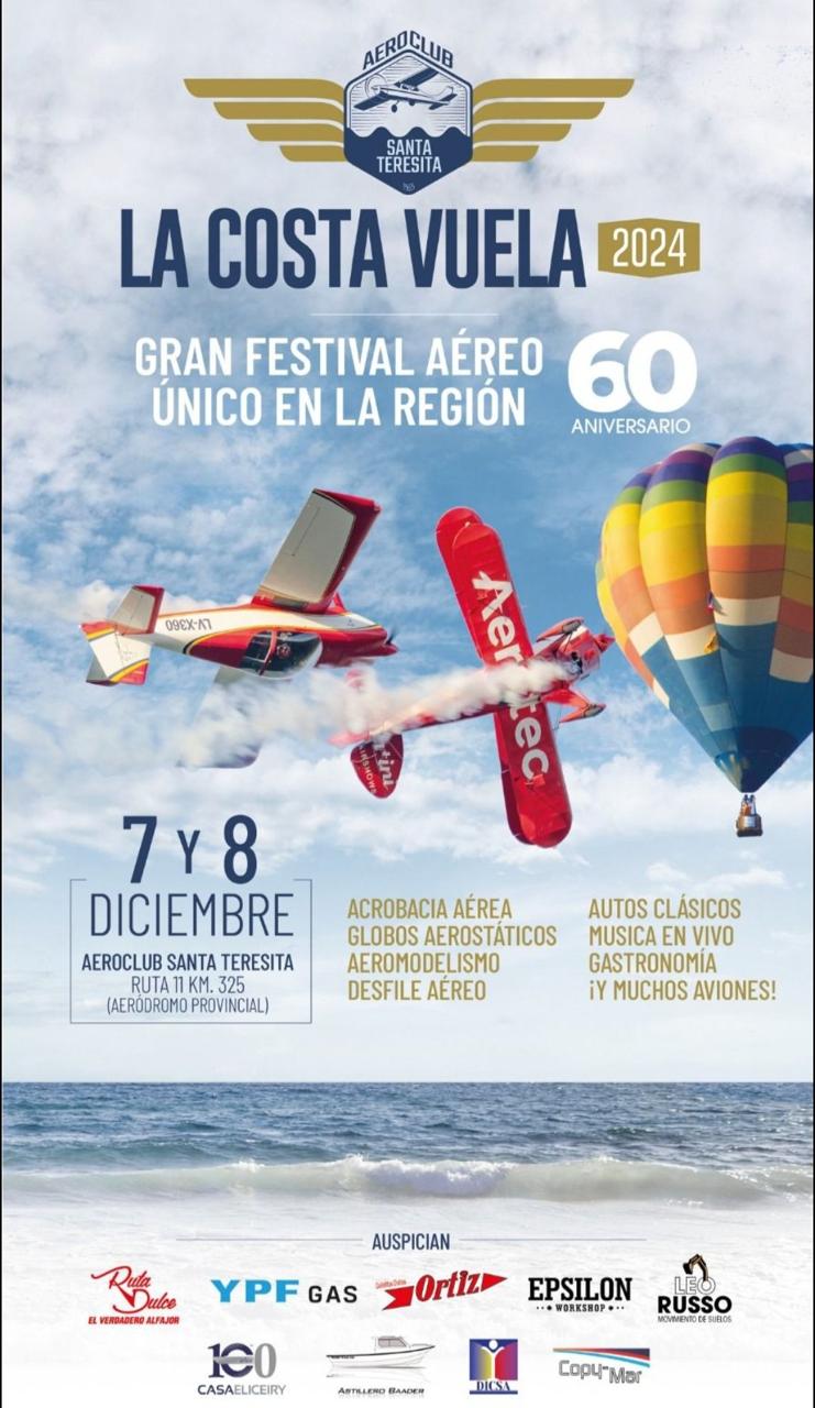 Este fin de semana se podrá disfrutar del festival “La Costa Vuela” organizado por el Aeroclub Santa Teresita para celebrar sus 60 años de trabajo en la comunidad.
