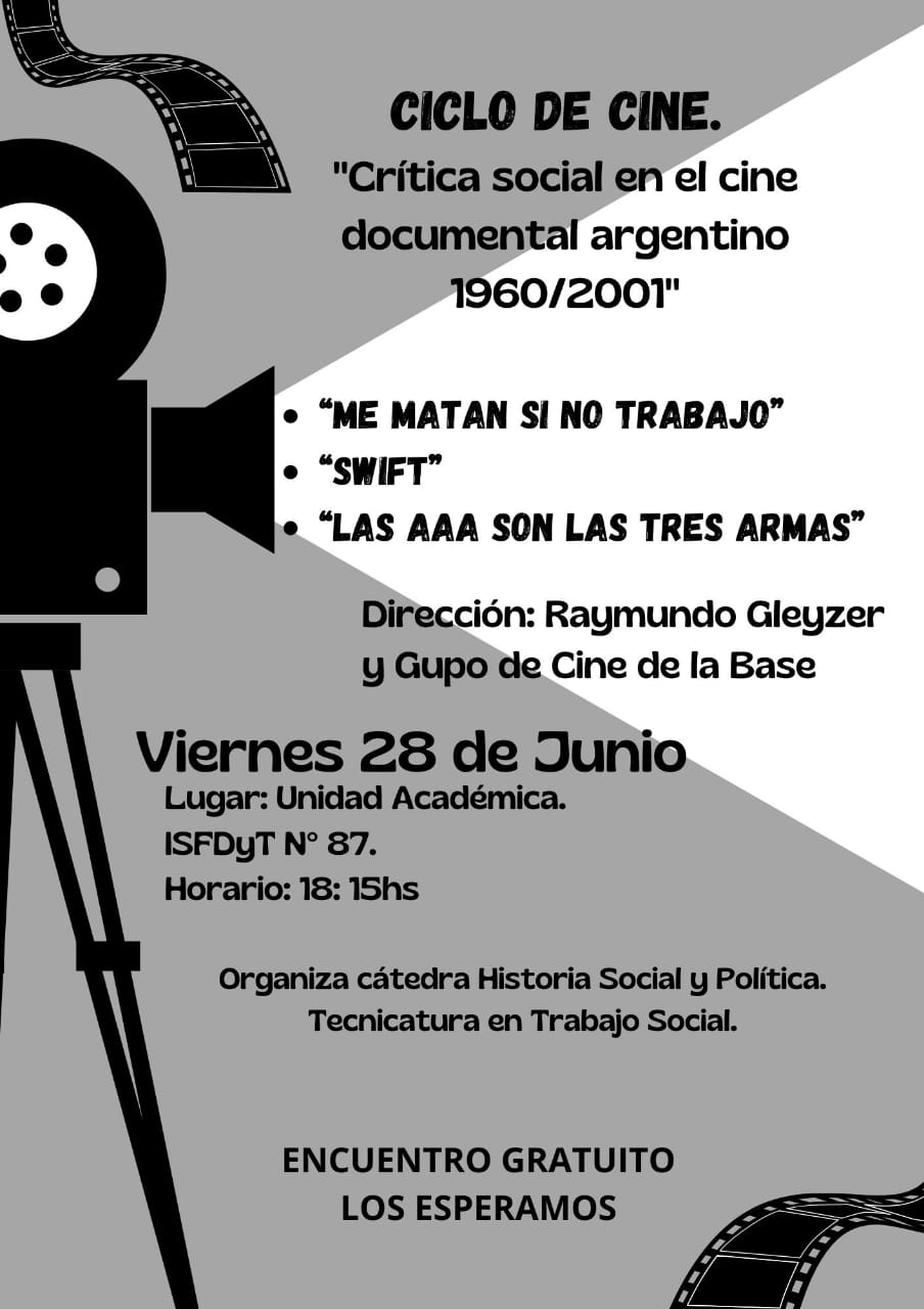 Este viernes 28 de Junio en la Ex Escuela Normal Ciclo de Cine, «Crítica Social 1960-2001» 25 junio, 2024 Pablo Tusq destacados, Locales, locales DIA 0 X