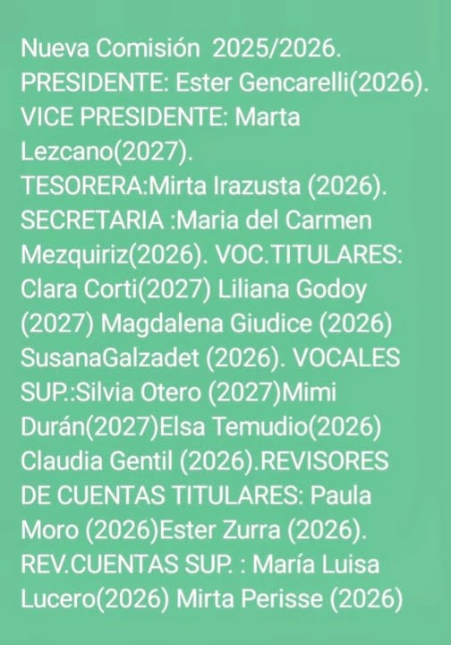 Éxitos y bendiciones a todos los concurrentes !!! La nueva comisión, quedó formalizada de la siguiente manera;