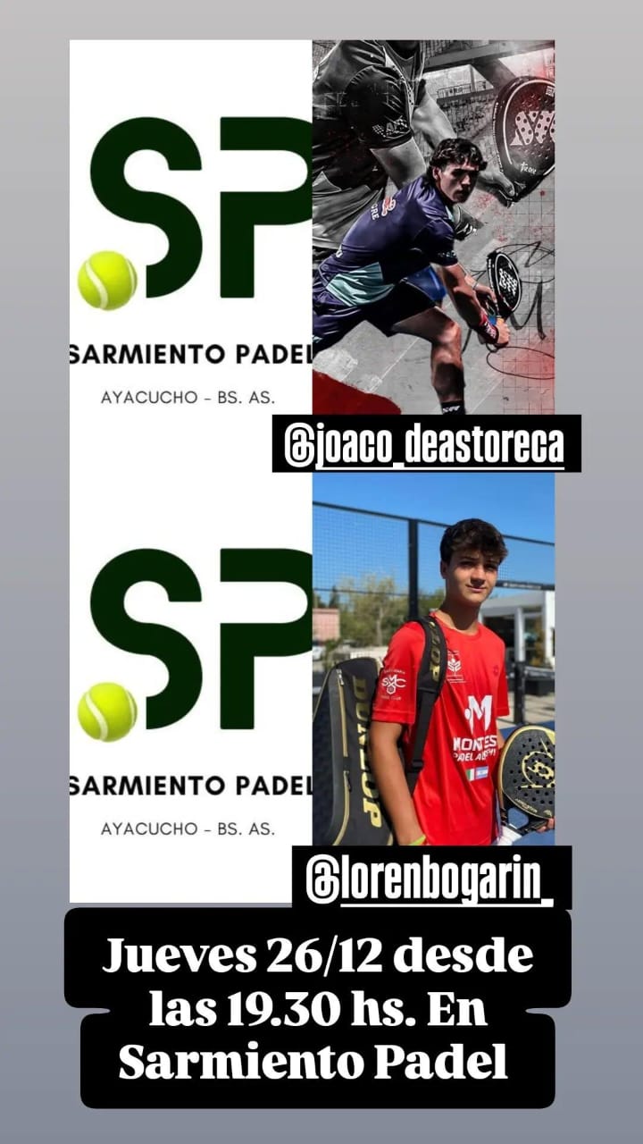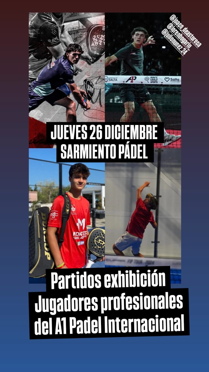 Este jueves 26 de Diciembre, Sarmiento Padel realizará un evento de exhibición del que participarán jugadores profesionales que hoy en día están disputando eventos de nivel internacional. Los encuentros serán desde las 19.30 hs. con entrada totalmente gratuita.