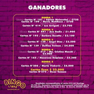 Aquí los ganadores de cada ronda como también de los sorteos de obsequios que se realizando durante la transmisión del evento.