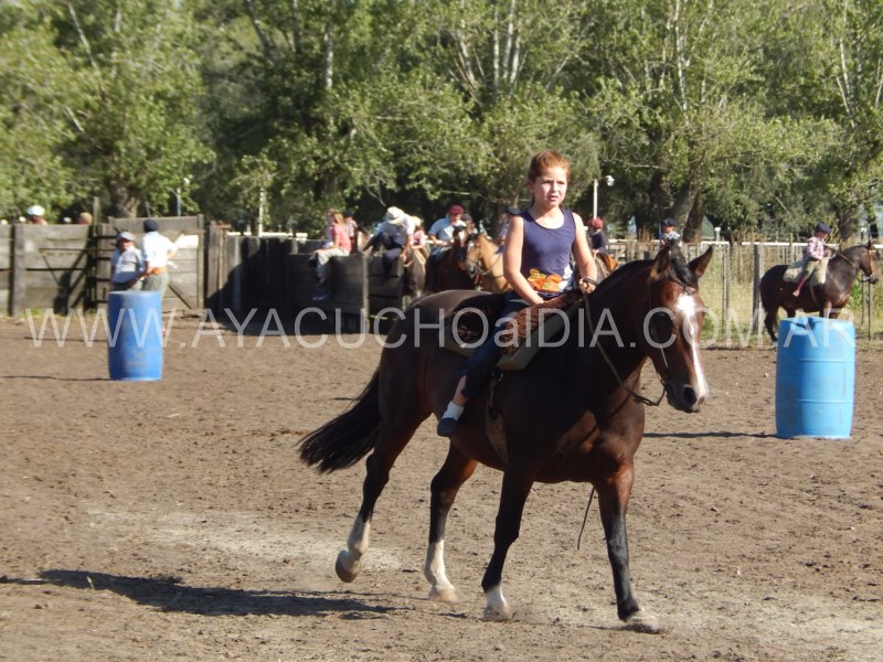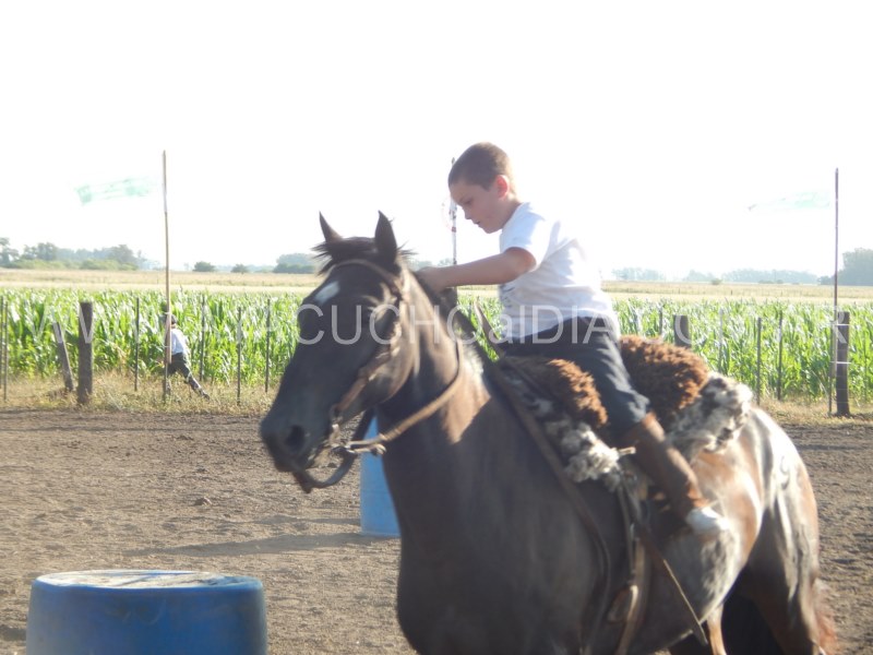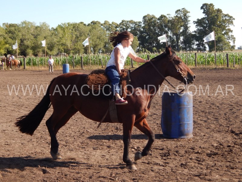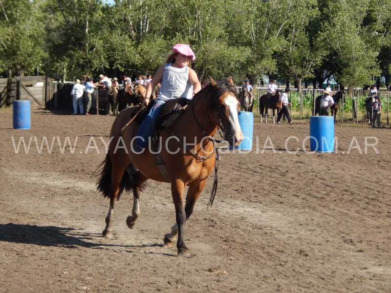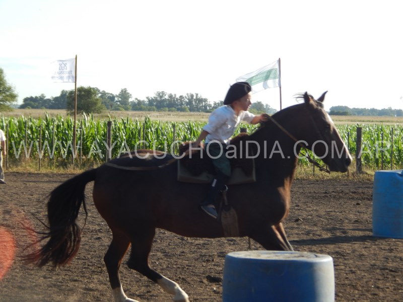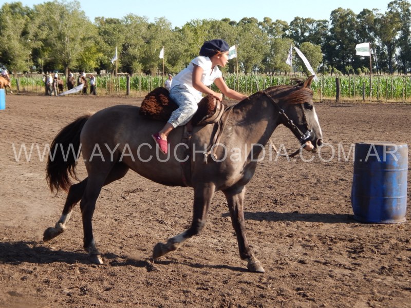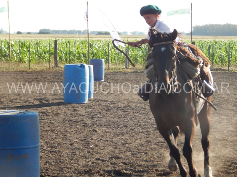 Niños y niñas ataviados con nuestra ropa que nos identifica, como la del gaucho para sus tareas diarias, se enfocaron entonces en  lograr que el caballo pueda correr entre tambores dibujando zigzag de ida y vuelta y finalmente realizar una atropellada hasta la raya final, donde está la línea de sentencia.