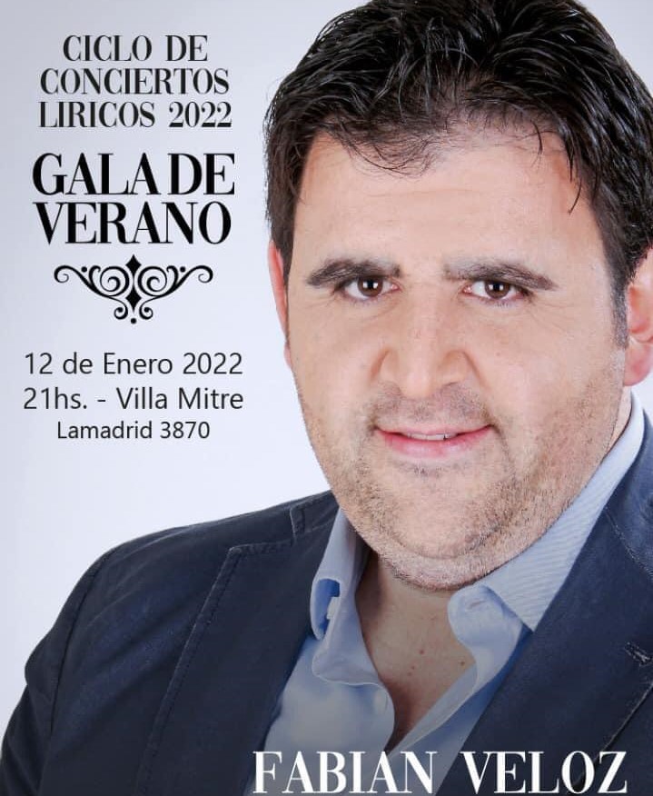 Hoy miércoles 12 como parte del ciclo de conciertos líricos que se están desarrollando en Mar del Plata, se presentará el ayacuchense Fabián Veloz. Será a las 21 horas en el espacio cultural Villa Mitre, de la balnearia ciudad de Mar del Plata, ubicado en Lamadrid 3870.