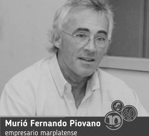 Falleció este viernes, a los 69 años, el empresario marplatense Fernando Piovano, una figura muy reconocida del ámbito empresarial, deportivo y cultural de la ciudad. El deceso se produjo en la Ciudad de Buenos Aires.