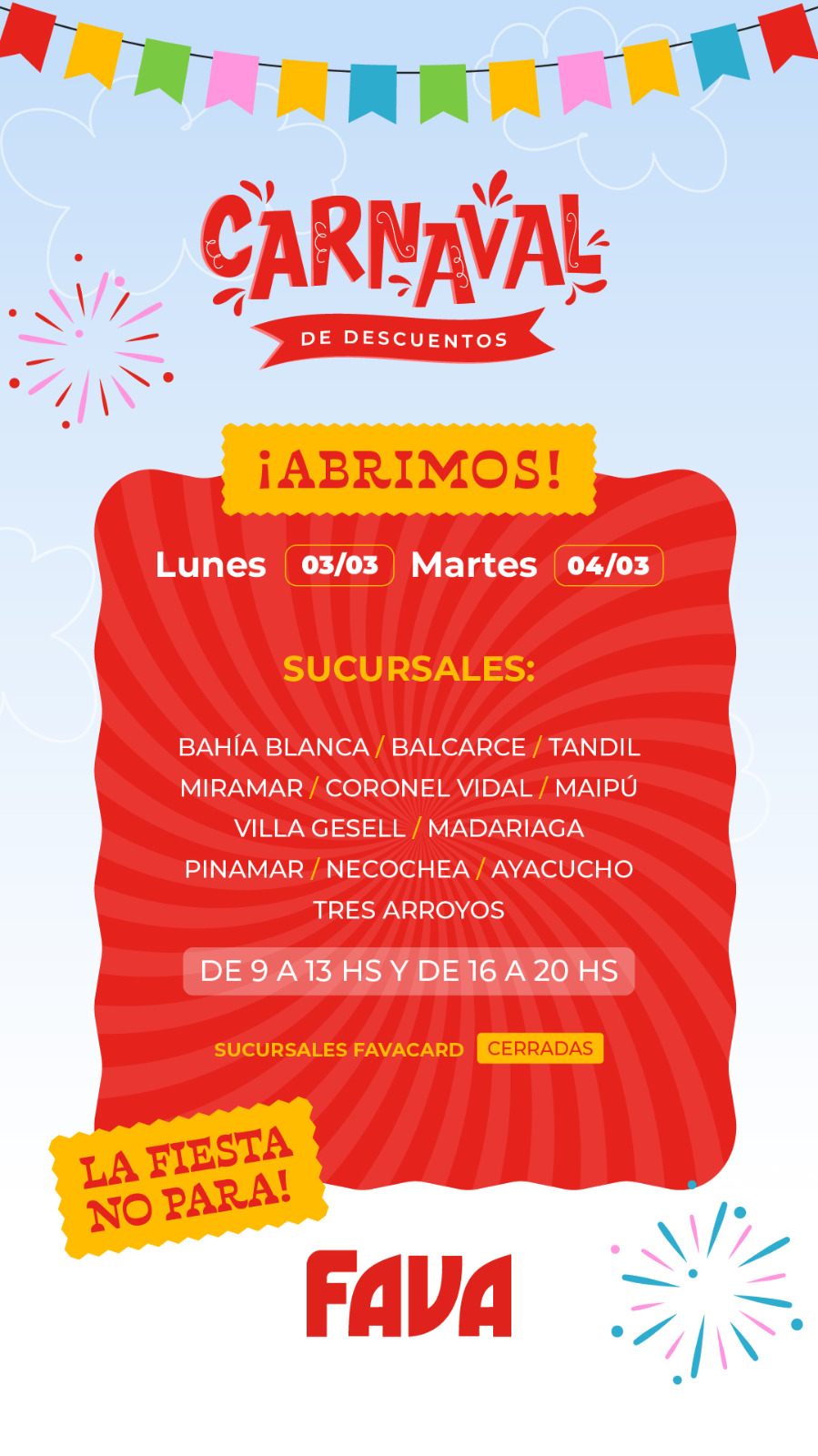 FAVA tiene abierto en carnaval – Te esperamos de 9 a 13 y de 16 a 20 25 febrero, 2025 Pablo Tusq Locales, locales DIA 0 Finde XXL y en FAVA estamos esperándote de 9 a 13 y de 16 a 20, para que la Fiesta No Pare: X