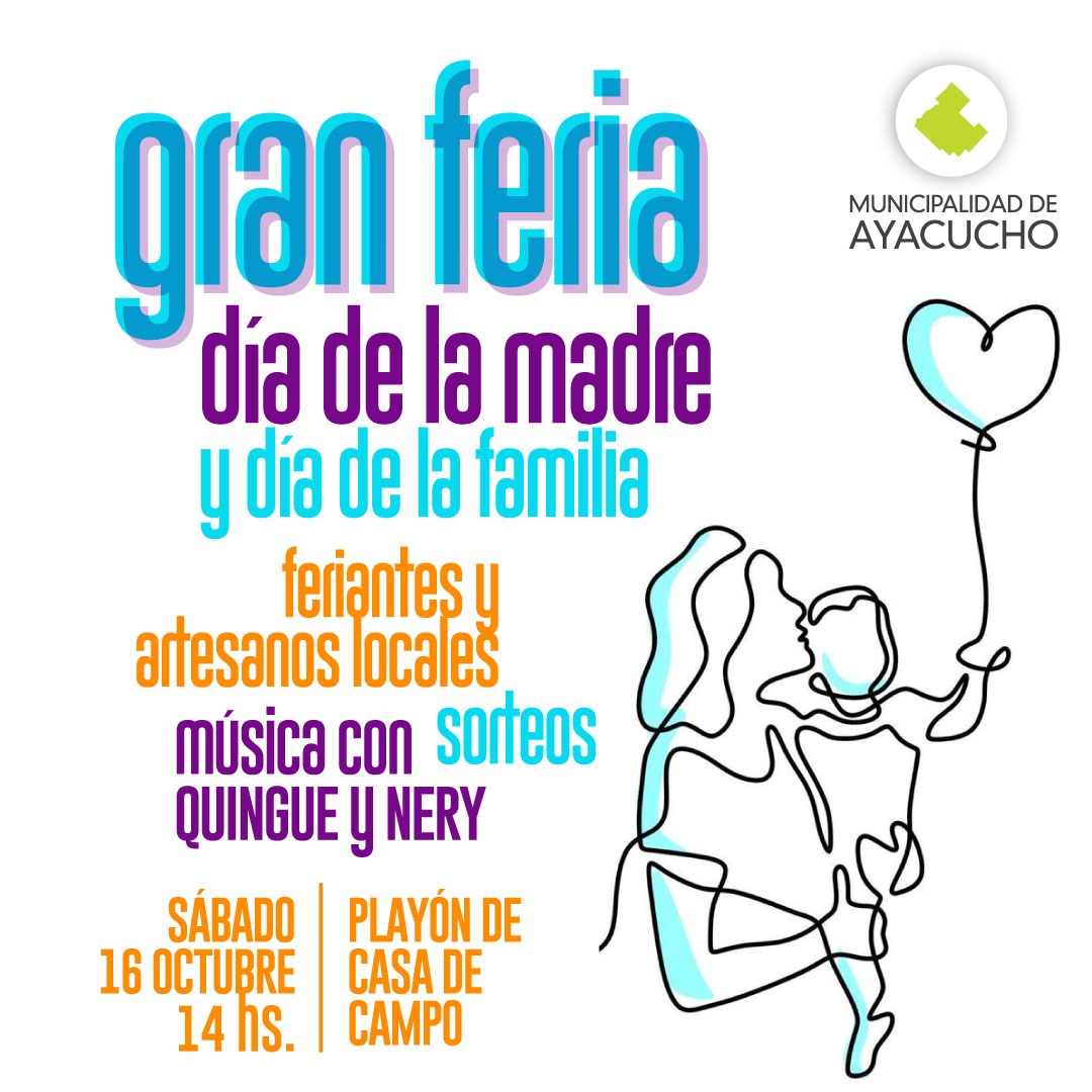 La Municipalidad de Ayacucho invita por este medio a toda la comunidad a participar y disfrutar de una gran feria de artesanos y espectáculos musicales, en vísperas del día de la madre-día de la familia.