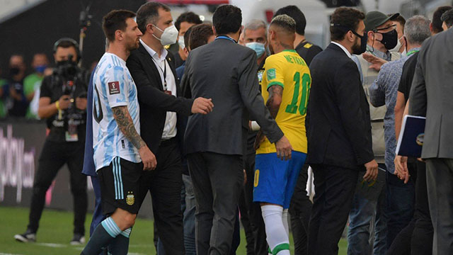 El superclásico Brasil-Argentina fue suspendido a los 5 minutos del primer tiempo en el estadio Arena Corinthians cuando delegados de la Agencia Nacional de Vigilancia Sanitaria (ANVISA) irrumpieron en el campo de juego para evitar su continuidad por razones de salud pública.