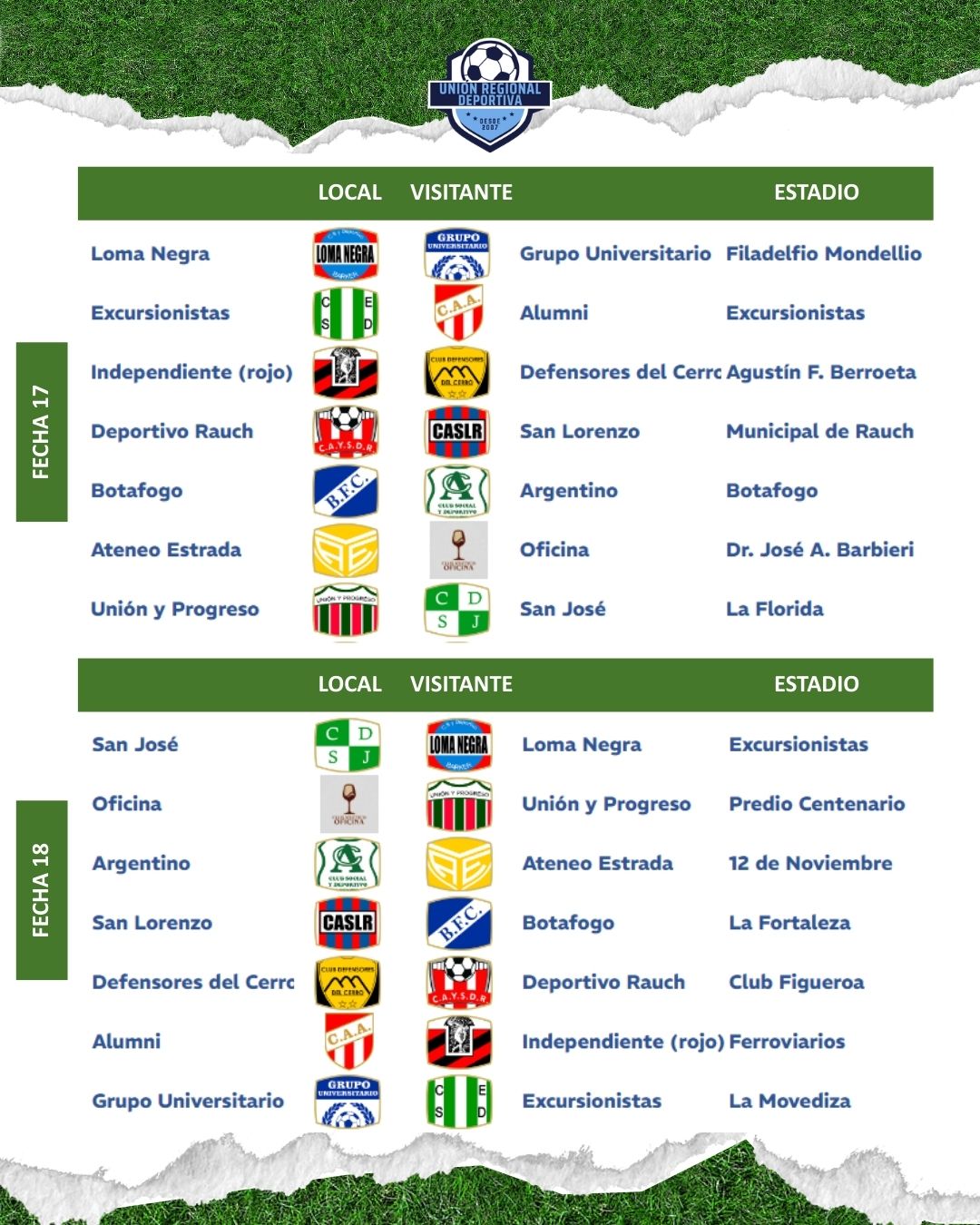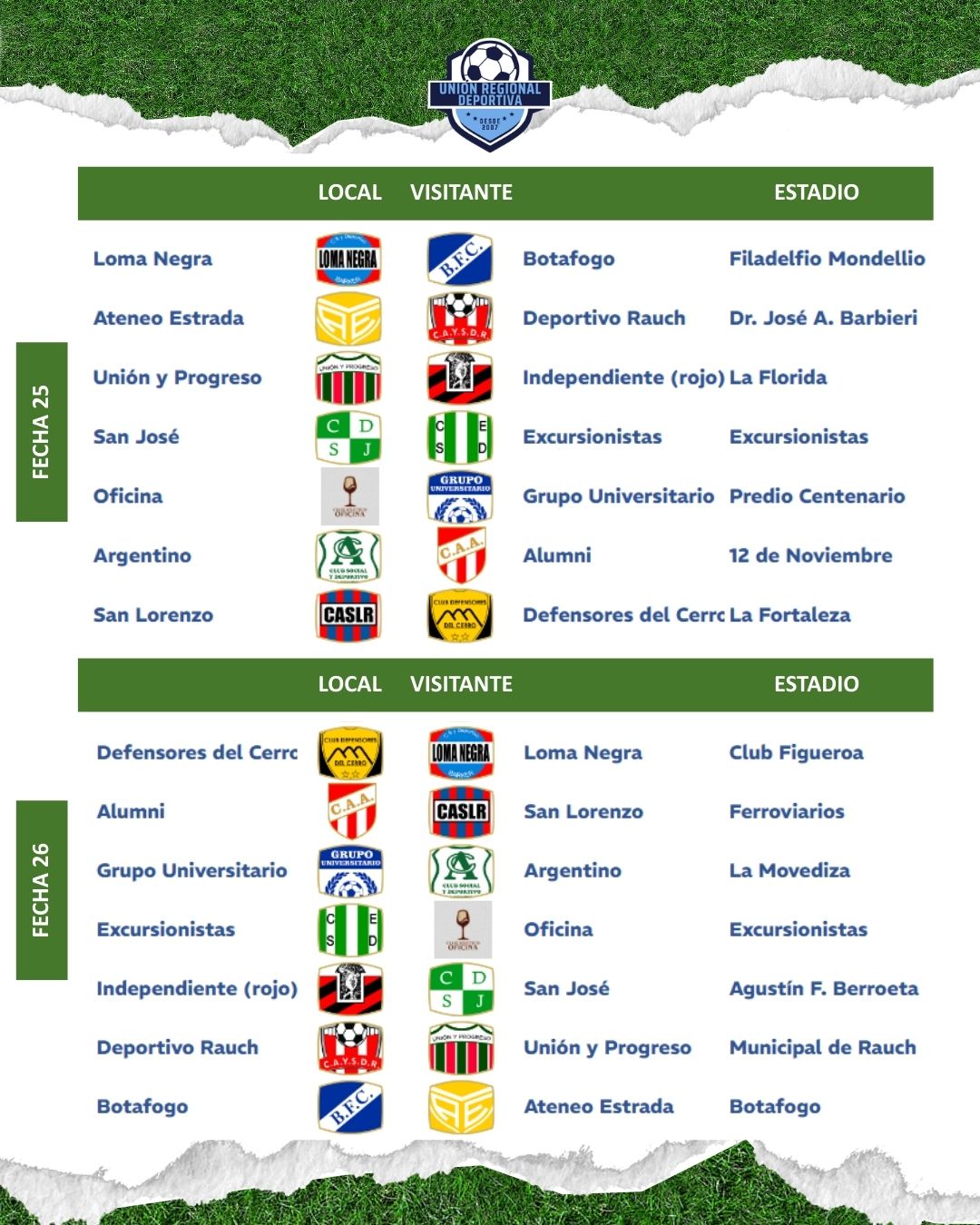 Fixtures oficiales de 1era división de la URD 2026 / Categorías «A» y «B» completos 4 marzo, 2026 Pablo Tusq Deportes, deportes DIA, destacados 0 Este es el fixture oficial de la categoría «A» en 2026; Fixture de la temporada 2026, para la Primera y Reserva B; X