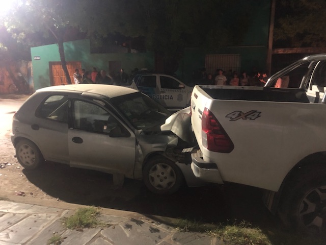 El auto venía circulando por Arroyo cuando al doblar, el conductor perdió el control y terminó impactando en la parte trasera de una Toyota Hilux que se encontraba estacionada sobre el margen derecho de A. Del Valle.