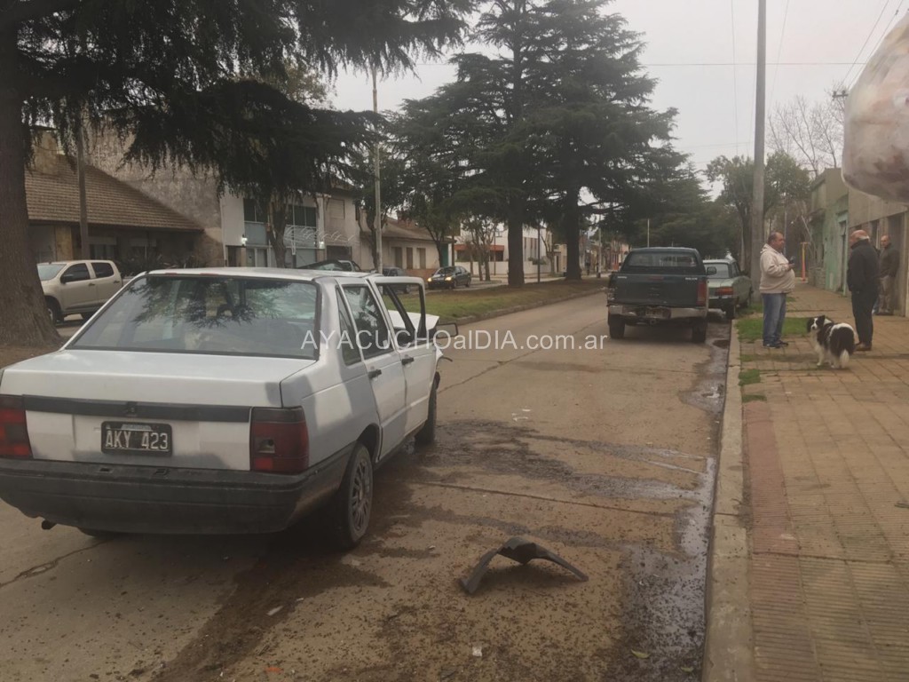 Un fuerte choque en cadena se produjo este Lunes por la mañana en Avenida Miguens, entre Alem y Mitre, cuando el conductor de un Fiat Duna que venía circulando por la mano que va hacia Dindart, se descompuso e impactó a una camioneta Toyota Hilux que estaba estacionada; y ésta también impactó contra un Ford Falcon que se encontraba metros más adelante.