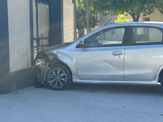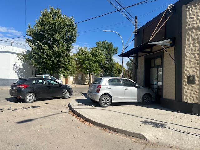 Este domingo alrededor de las 10 horas se produjo un fuerte choque entre dos autos, en la esquina céntrica de Rivadavia y San Martín. Como consecuencia del mismo, una mujer que conducía el Toyota Etios gris que terminó arriba de la vereda, fue llevada por precaución al Hospital Municipal.