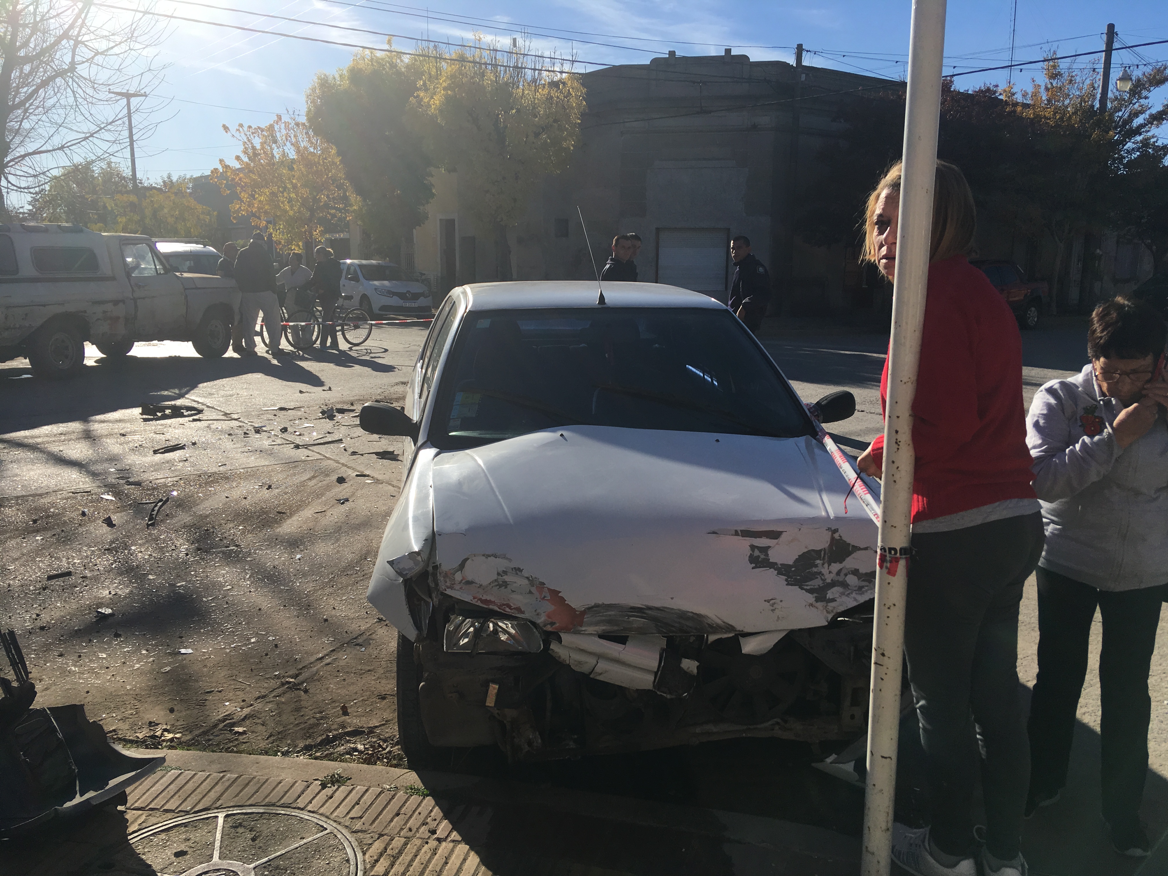 El hecho ocurrió este Miércoles por la mañana en la esquina de Murgier e Yrigoyen, donde el Peugeot 306 blanco que manejaba la señora impactó contra una Ford F100 que terminó haciendo un trompo.