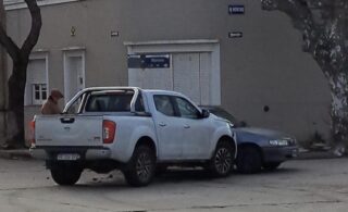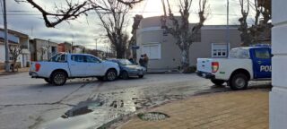 Este jueves por la mañana se produjo un fuerte choque entre una camioneta doble cabina y una auto, en la esquina de San Martín y Moreno.