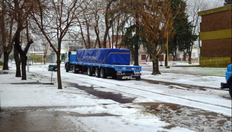 La espesa capa de pequeñas bolitas de hielo, que cubrió de blanco toda la planta urbana, como si se tratara de un paisaje nevado de la Patagonia, tardó horas en disiparse.
