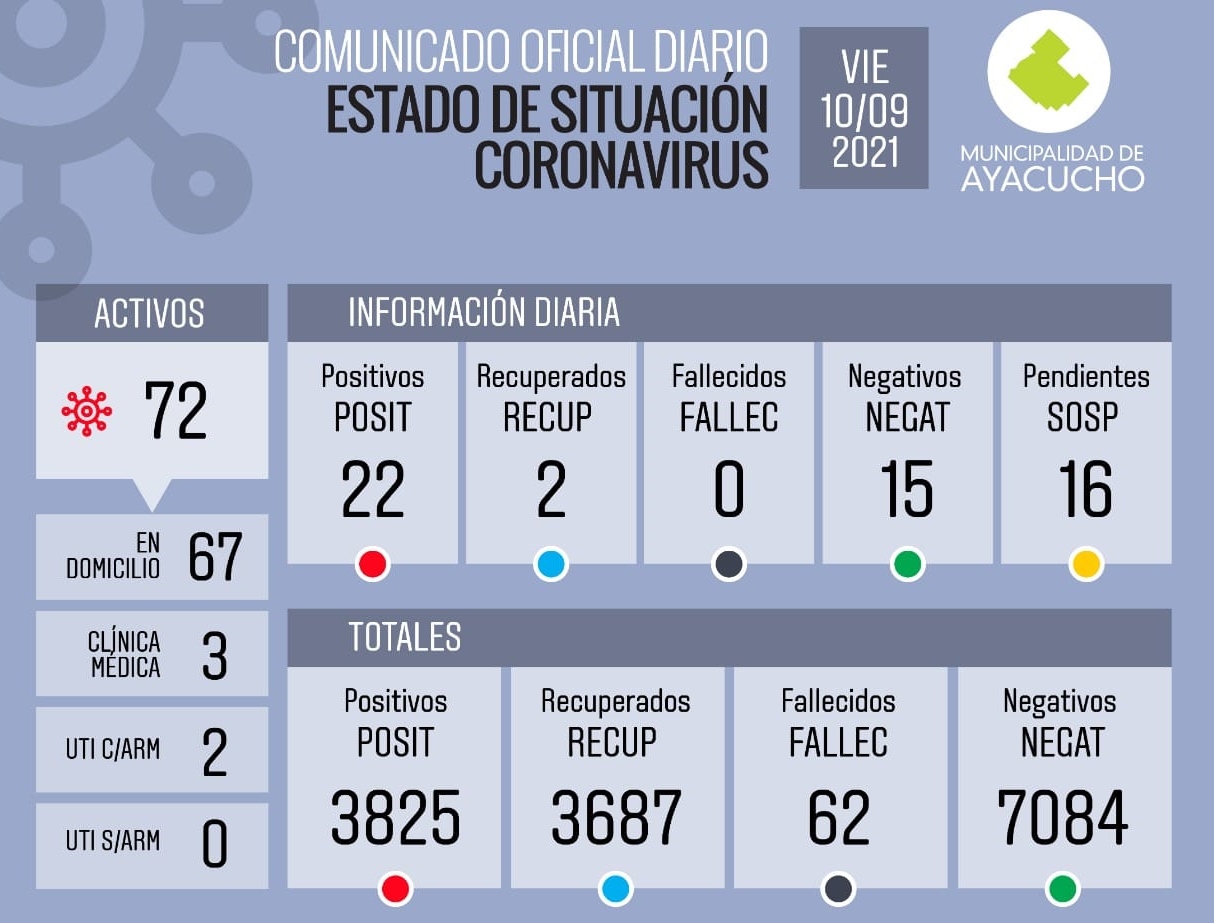 De ese total, siguen 5 pacientes internados en el Hospital Municipal, estando 3 en Clínica Médica y 2 en Unidad de Cuidados Intensivos.