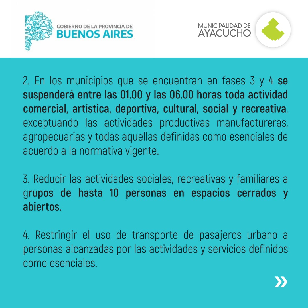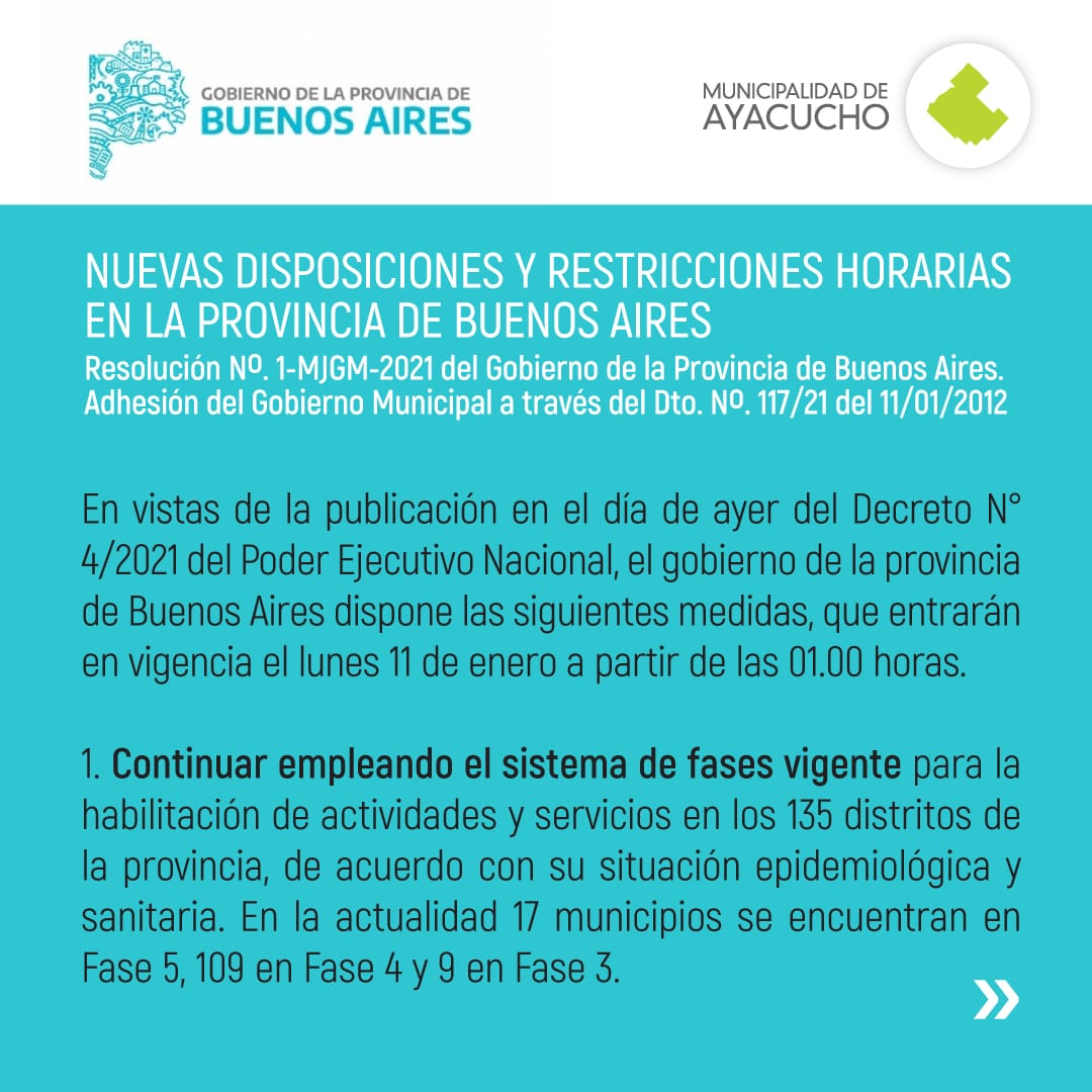 NUEVAS DISPOSICIONES Y RESTRICCIONES HORARIAS EN LA PROVINCIA DE BUENOS AIRES;