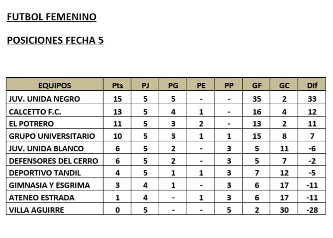 Cinco encuentros le dieron marco a una nueva fecha que mantiene a Juventud Unida Negro firme en la punta de las posiciones con puntaje ideal.