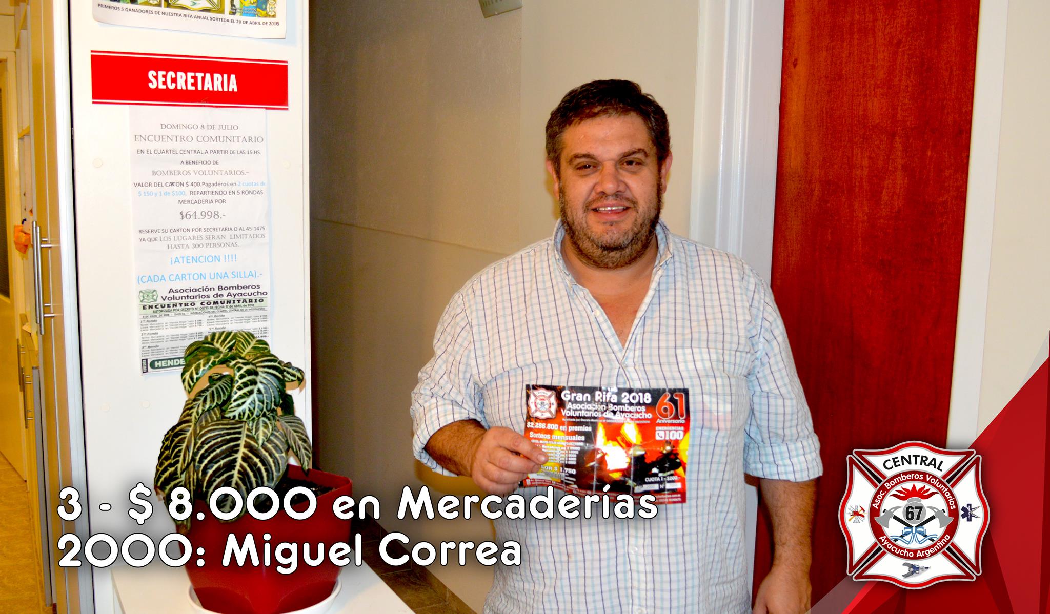 3°: $ 8.000.- en Mercaderías N° 2000 Miguel Correa