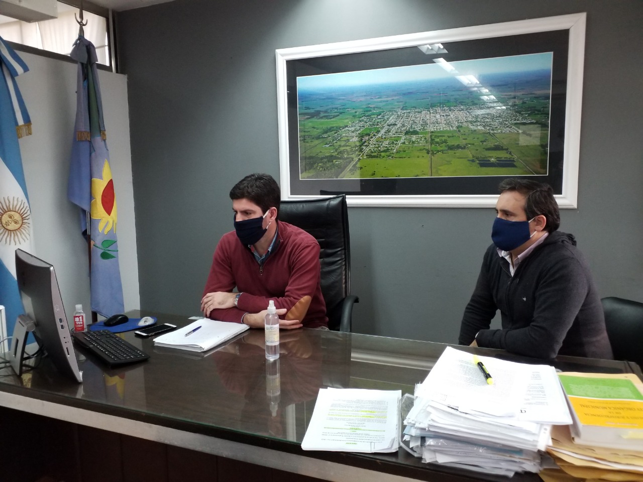 El Intendente Municipal Lic. Emilio Cordonnier acompañado del Secretario de Obras y Servicios Públicos Arq. Ignacio Durcodoy, mantuvo este miércoles por la mañana una videoconferencia con el Ministro de Obras Públicas de la Nación, Gabriel Katopodis.