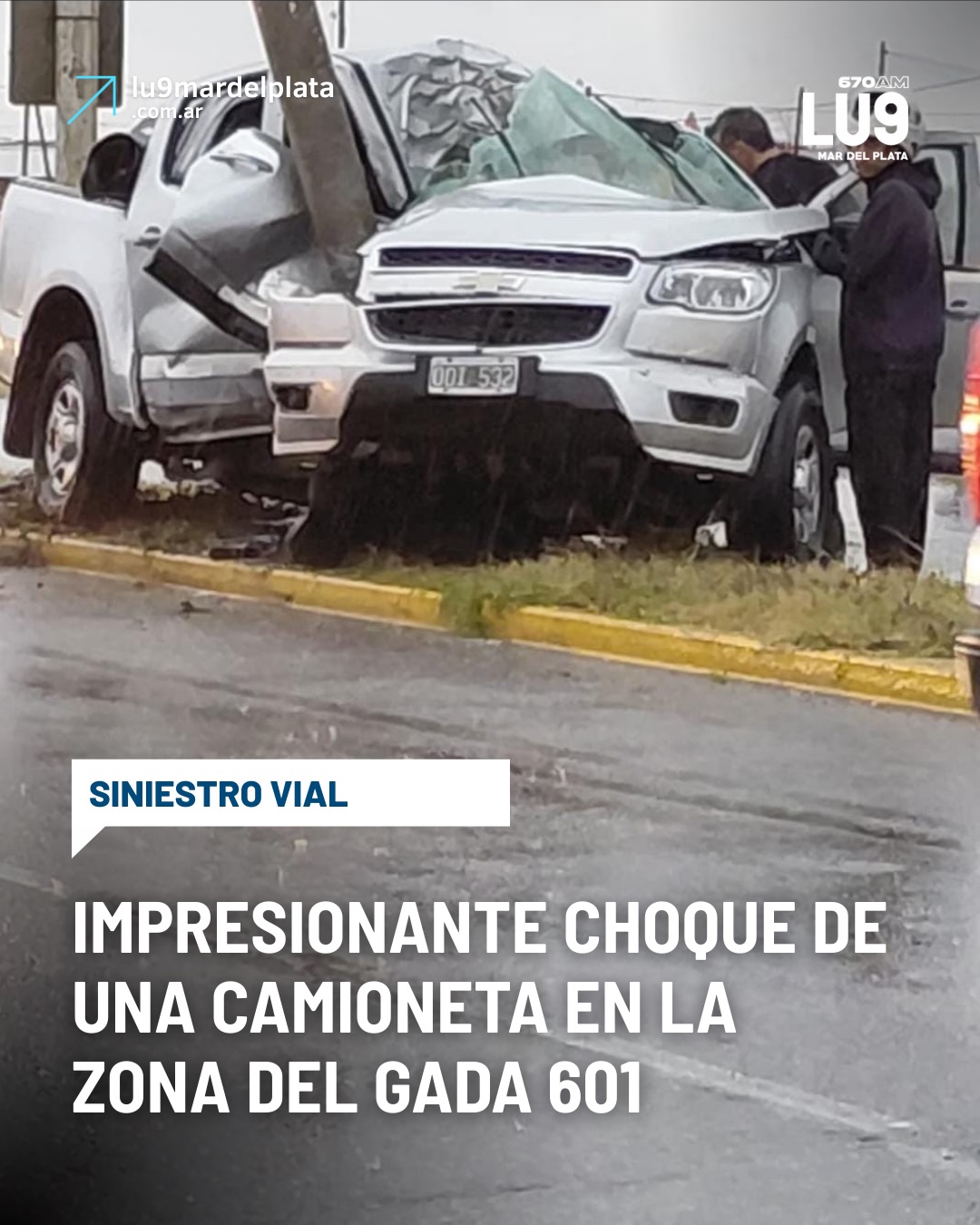 En medio de una fuerte cortina de lluvia, una camioneta Chevrolet con dos hombres a bordo despistó por motivos que aún se intentan establecer e impactó de lleno contra un poste de luminarias del cantero central.