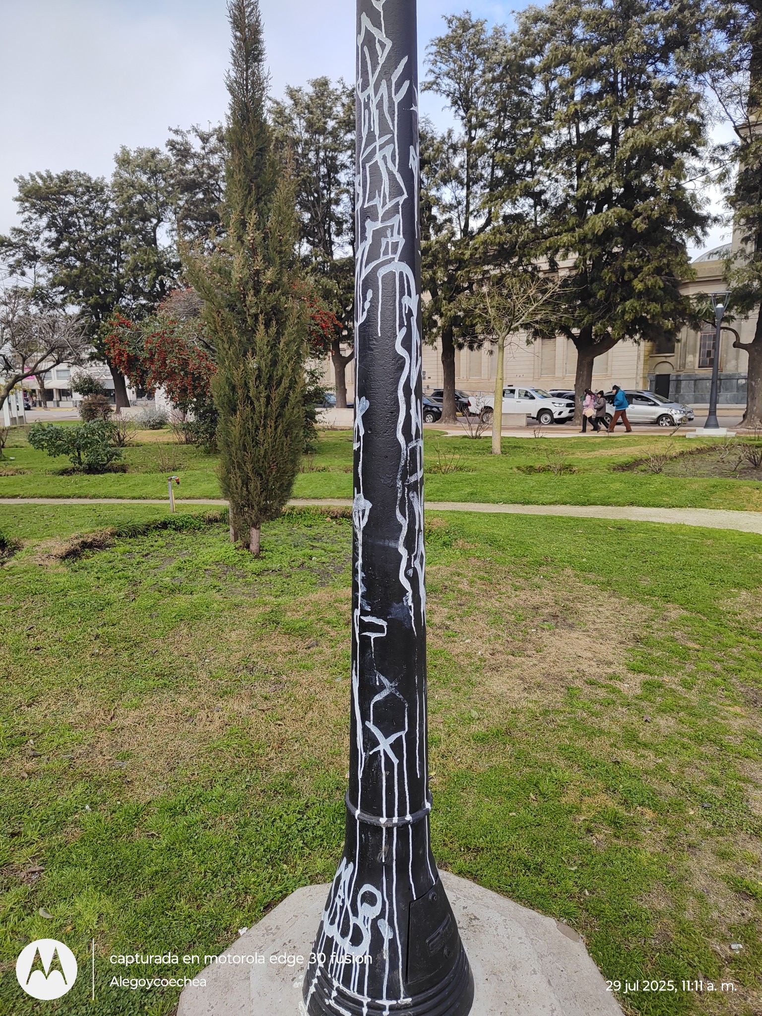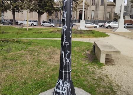 Nuestra convecina Alejandra Goycoechea publicó en sus redes sociales sobre un hecho que no puede pasar desapercibido. Nuevamente los enemigos de todo volvieron a actuar, nuevamente en la Plaza San Martín, descargando su maldad contra las columnas del alumbrado. Cuesta creer que esto esté pasando en Ayacucho y que entre los mismos vecinos se produzcan este tipo de hechos vandálicos.
