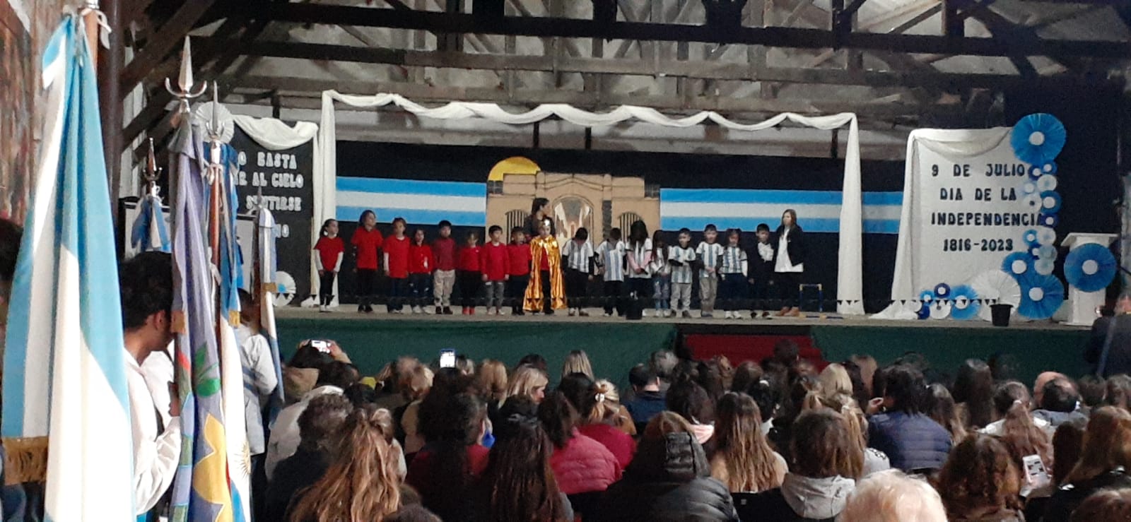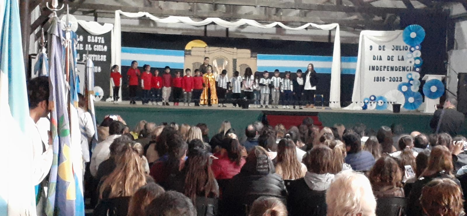 Con una numerosa concurrencia de público que colmó las instalaciones del Galpón de la Fiesta del Ternero, el acto contó con la participación de banderas de ceremonia de distintas instituciones educativas.