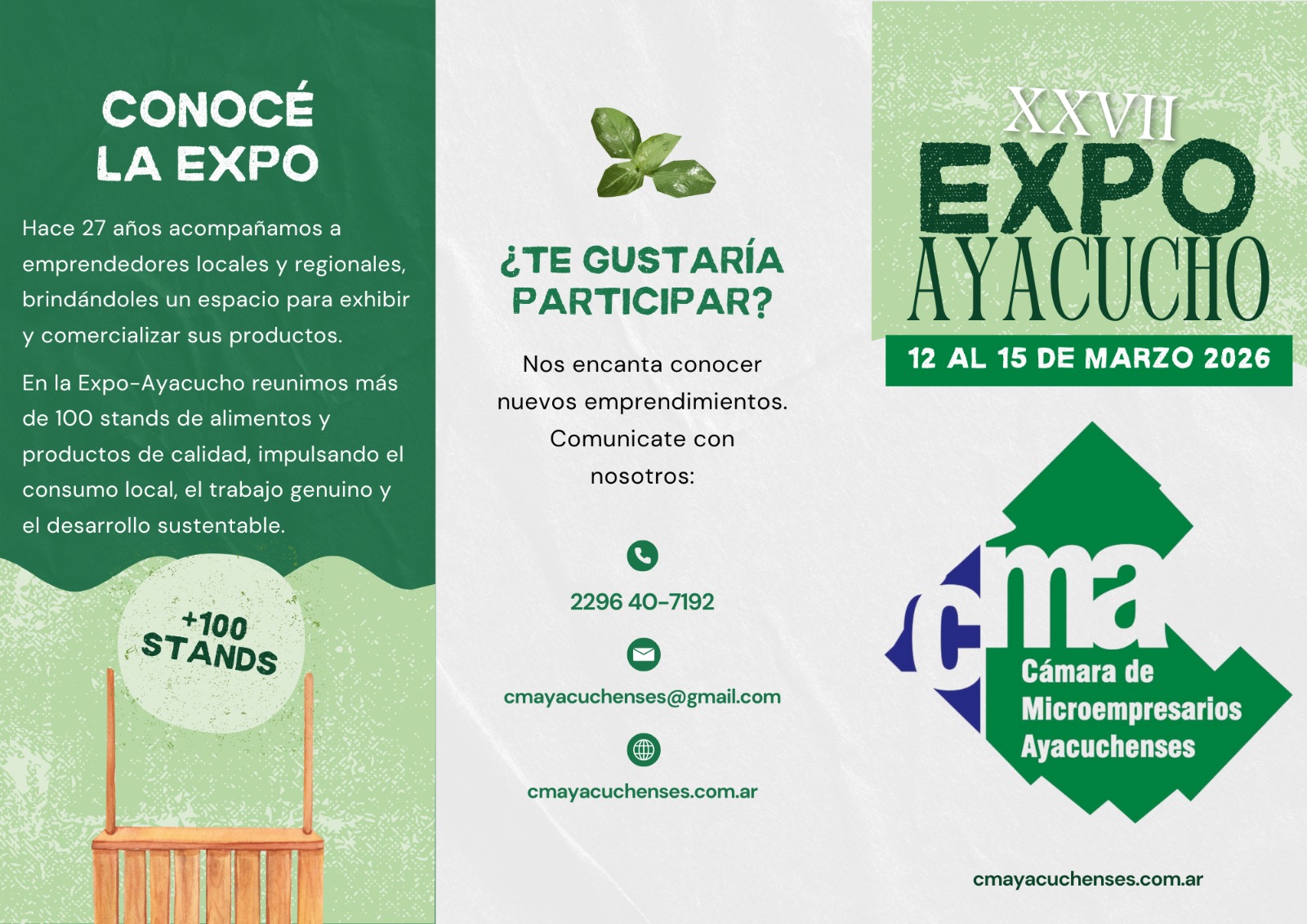 La Cámara de Microempresarios Ayacuchenses invita a emprendedores a formar parte de la XXVII Expo-Ayacucho, que se llevará a cabo del 12 al 15 de marzo de 2026. Este espacio está diseñado para que cada expositor pueda dar a conocer su trabajo, establecer vínculos comerciales y fortalecer su presencia en el mercado local.