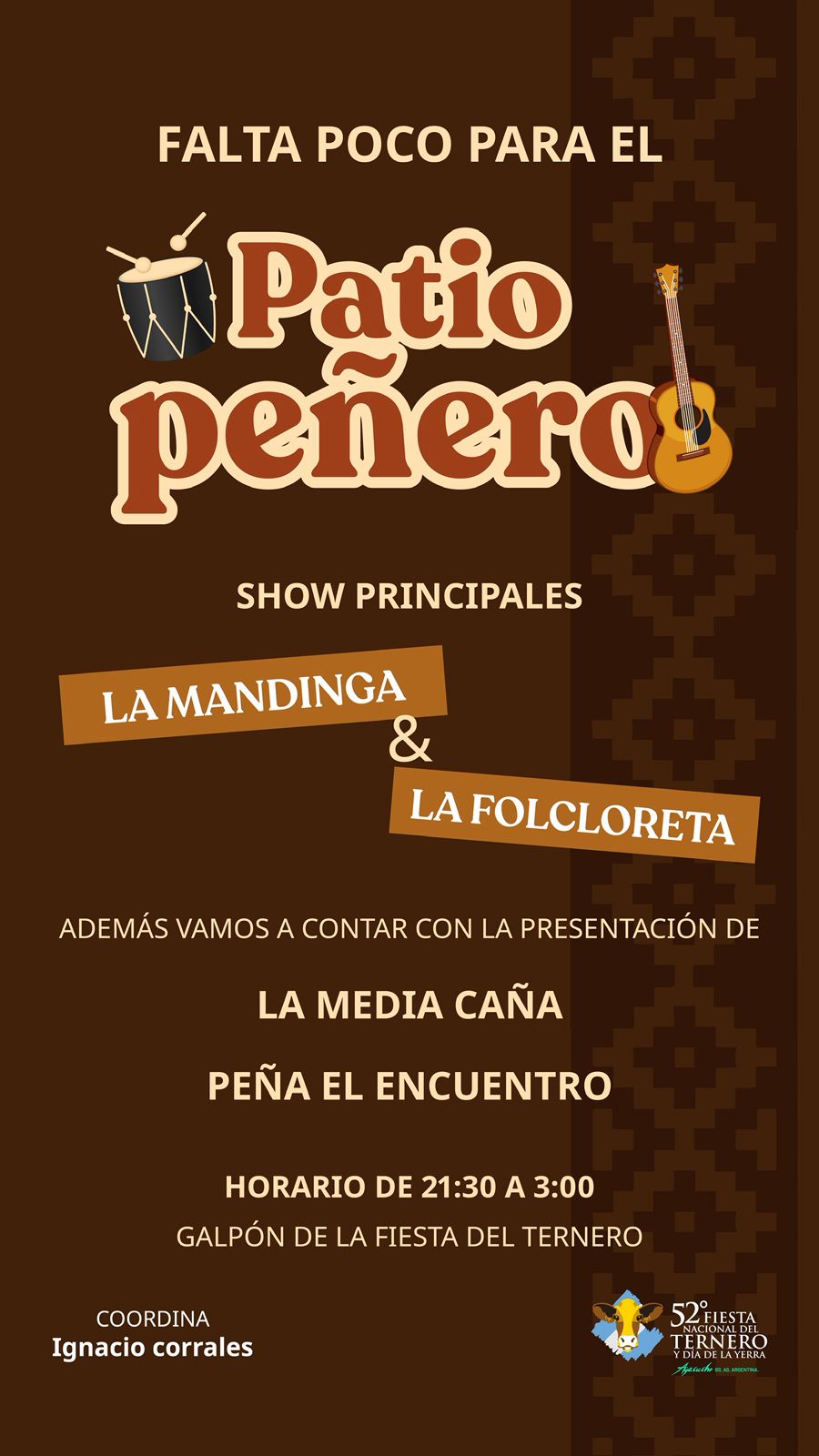 Ayacucho va entrando de a poco en clima de Fiesta…del Ternero y por eso, esta noche se llevará a cabo el renovado Patio Peñero, una forma de ir metiéndonos en lo que será la 52ª edición de nuestro gran evento festivo.