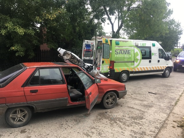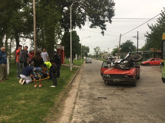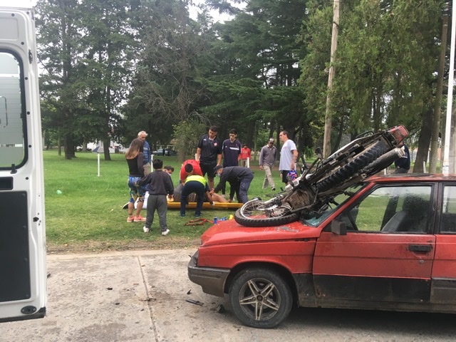 Alrededor de las 17 horas se produjo un imponente accidente entre una moto y un auto, donde el conductor de la moto tuvo que ser hospitalizado. La moto quedó encima del vehículo tras impactar de frente.