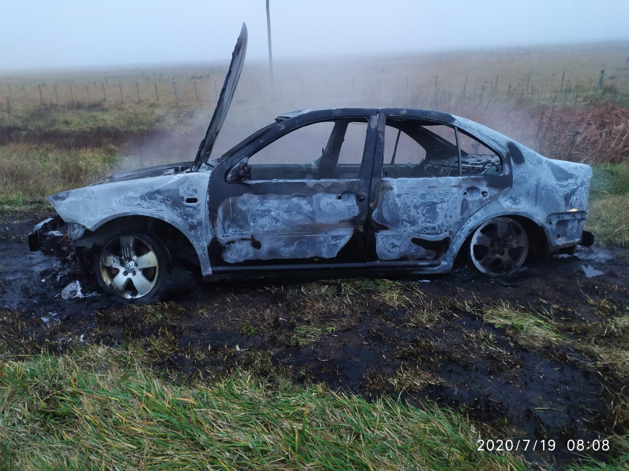 Concurrió al lugar una dotación a cargo del Oficial Auxiliar de Dotación Dario Iriarte, con las unidades número 01 y 06. Arribados al mismo se constató que se trataba del incendio declarado de un automóvil marca Volkswagen modelo Bora.