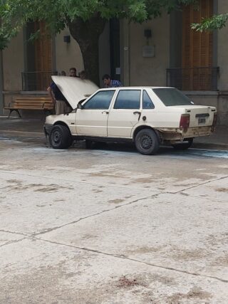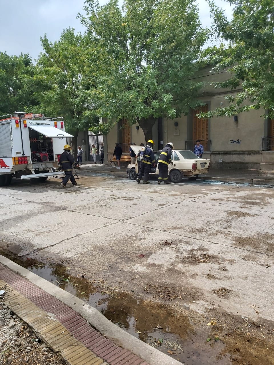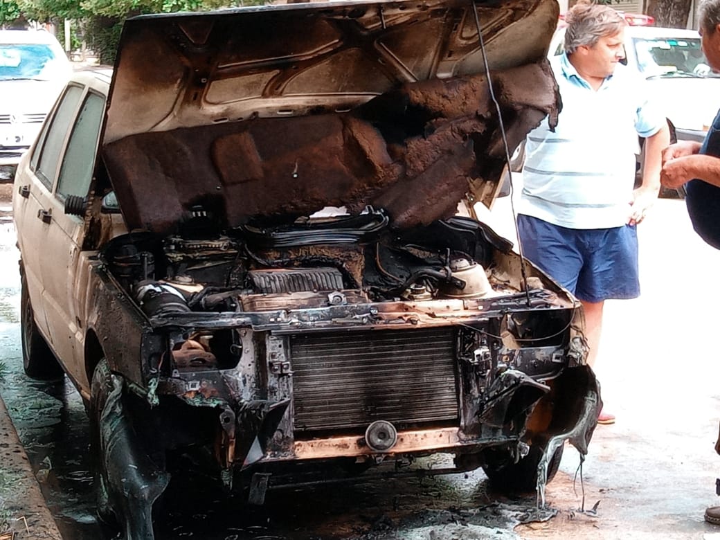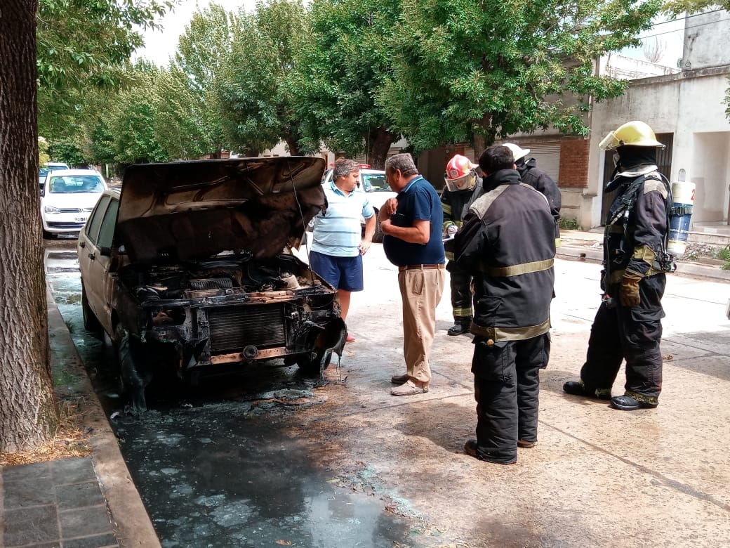 Este domingo pasadas las 14 horas se produjo el llamado de Bomberos Voluntarios como consecuencia del incendio declarado en un Fiat Duna que estaba estacionado en Alem entre España y Poderoso.