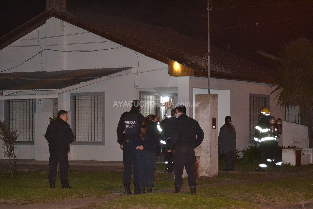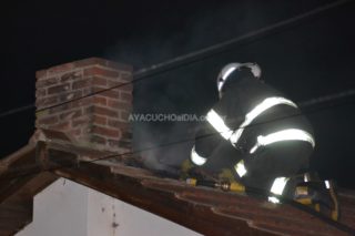 Ayacuchoaldia.com.ar estuvo allí donde observamos la tarea que efectuaron los servidores públicos, quienes además de haber procedido al corte de energía eléctrica de la casa, tuvo que comenzar a quitar las tejas del techo, dado que como se observaba desde superficie, se encontraban con fuego los tirantes del mismo.