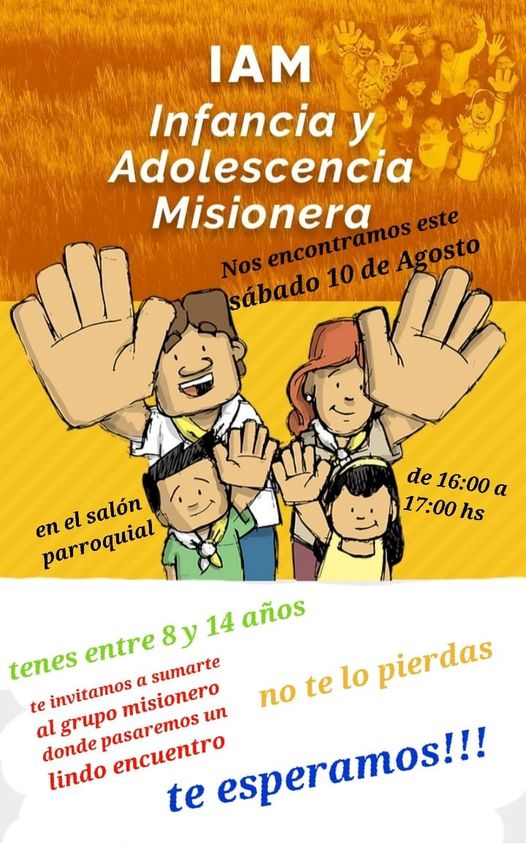 Infancia y Adolescencia Misionera – Este sábado reunión en el Salón Parroquial a las 16