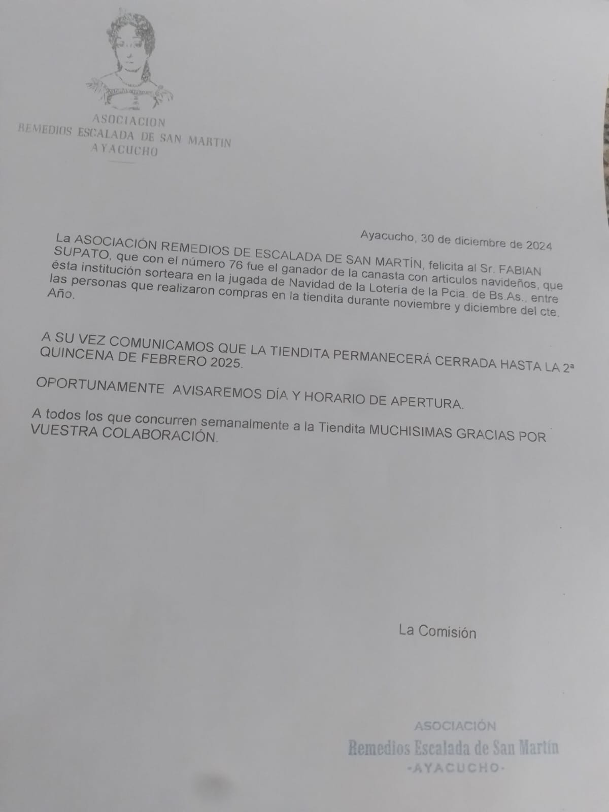 Información de la Asociación Remedios de Escalada de San Martín / Cerró hasta la 2da quincena de Febrero 2 enero, 2025 Pablo Tusq destacados, Locales, locales DIA 0 X