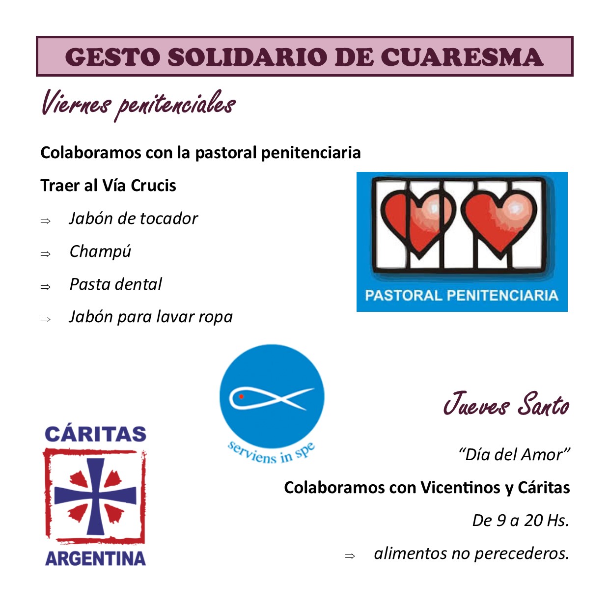 1. Trayendo al viacrucis donativos para la Pastoral Penitenciaria (jabón de tocador, champú, pasta dental o jabón para lavar ropa).