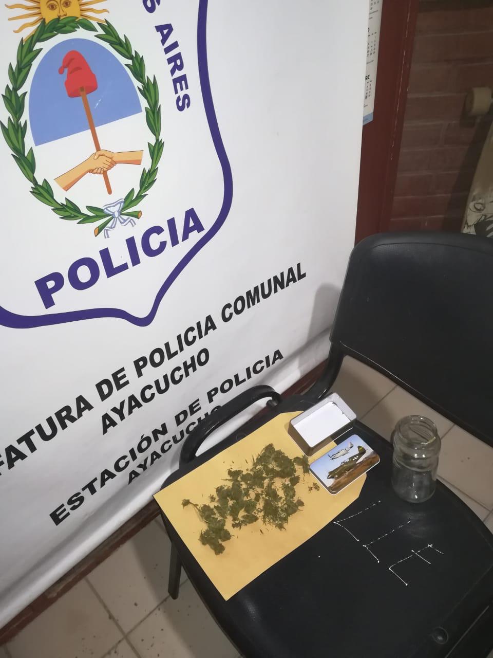 Fecha 12 de junio cte, personal policial de Estación Comunal Ayacucho lograron interceptar a un masculino mayor de edad en intersección de calles España y Almafuerte, quien tenía en su poder una sustancia pardo verduzca, (marihuana), por lo que se le realiza el test orientativo arrojando resultado de Cannabis Sativa con un guarismo de 1,8 gramos.