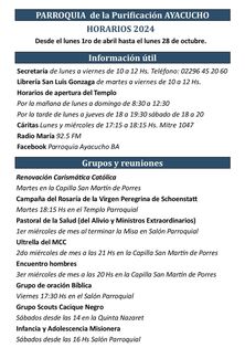 Información Oficial de la Parroquia «Nuestra Señora de la Purificación» 25 octubre, 2024 Pablo Tusq destacados, Locales, locales DIA 0 X