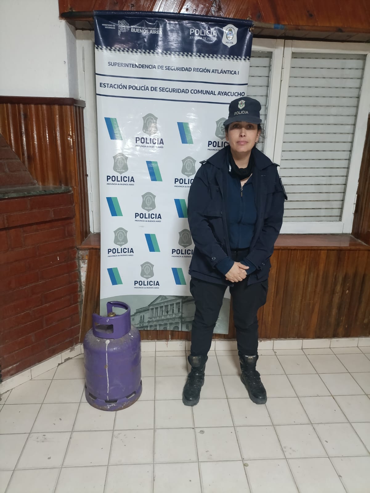 Personal policial, tras un alerta vecinal, se constituyó en el domicilio de calle Ameghino, observando a un sujeto que salía del interior de la vivienda con una garrafa de 10 kg color violeta, sustraída, tras forzar la puerta de acceso.